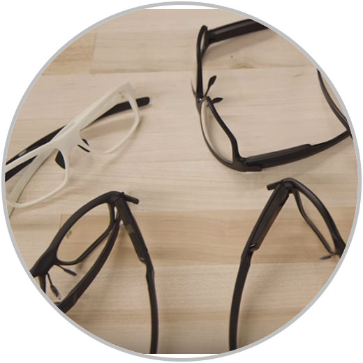 - Marcos de plástico simulando el diseño de una gafa corriente