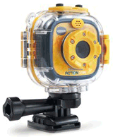 De entre las posibilidades del mercado te proponemos la Kidizoom Actioncam, una cámara de acción que permite la captura de imágenes y vídeo además de incorporar juegos. Puede montarse fácilmente sobre un patín o bici y también es sumergible para que no se pierdan ni un momento. Su memoria puede expandirse por memoria SD. Podrán pasar sus vídeos y fotos a través de cable al ordenador. Se recomienda su uso a partir de los 4 años y puedes comprarla en diferentes colores. Su precio está en torno a los 50€, haz que los más pequeños tengan recuerdo de sus mejores momentos.