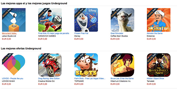 Parece genial y realmente así lo es. Aunque debemos matizar algunos detalles. A pesar de que 1000 nos puede parecer una barbaridad, Google Play nos ofrece muchas mas. Aun así es una idea muy interesante y va a permitirnos poder disfrutar de todas estas apps, de manera totalmente gratuitas en su version básica asi como con los añadidos disponibles mediante compras en in-app. Todas aquellas apps que normalmente tenemos que pagar para desbloquear niveles, ahora con Amazon serán gratis. Entre las mas populares podemos encontrar: Final Kick, Frozen Free Fall, Cut the Rope, Angry Birds Facetune, Star Wars: Knights of the Old Republic, Monument Valley, Goat Simulator, Slingshot Stella, Bad Piggies…