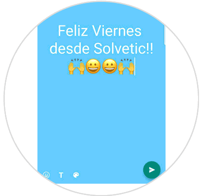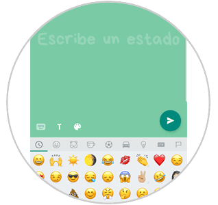Ya puedes escribir tu estado. Podrás escribir hasta 250 caracteres. En el icono de la T podrás elegir entre 5 tipografías distintas para combinar con 20 colores de fondo diferentes. Podrás añadir también emojis al texto pulsando el icono de la carita.