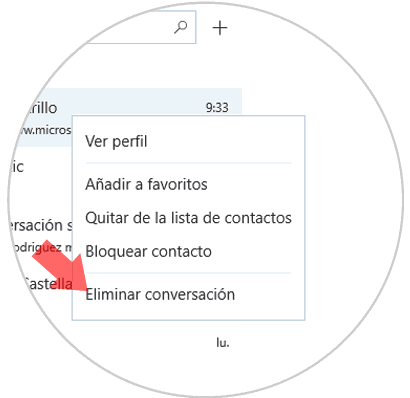 Para eliminar una conversación de forma permanente de nuestro chat de Skype sólo tendremos que pulsar sobre la conversación con el botón derecho y se desplegará un listado en el que aparecerá al final “Eliminar conversación”. Si pulsamos sobre esta opción este chat quedará eliminado para siempre.