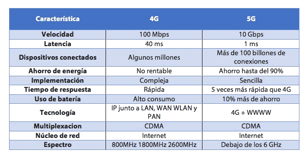 Para comprobar cómo se diferencia 4G de G hemos creado el siguiente cuadro comparativo donde veremos algunas de las principales diferencias notorias.