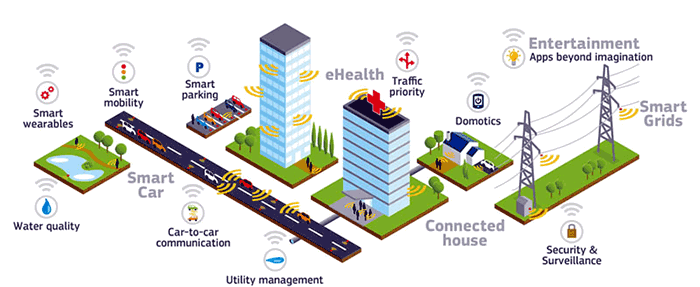 - Aumentará el número de dispositivos conectados de 10 a 100x lo cual se calcula en un promedio de 50.000 millones de dispositivos conectados de forma simultanea