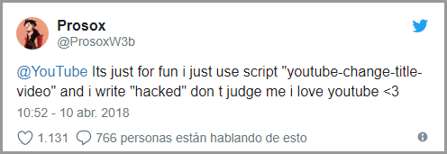 En respuesta a la acusación uno de los grupos de hackers se justificó de este acto en YouTube utilizando también la red social Twitter y alegando que “le encanta YouTube y sólo lo hacía por diversión”.