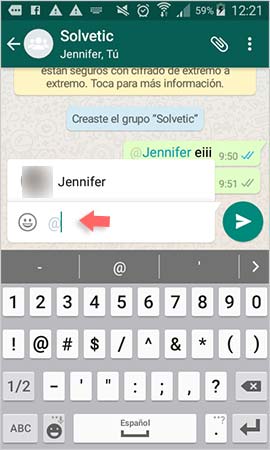 La forma de utilización es muy sencilla ya que únicamente tenemos que situarnos en la barra de escritura del grupo en cuestión y escribir @. Una vez hecho esto, aparecerán en la pantalla los nombres de todos aquellos integrantes del grupo.