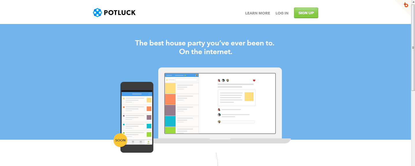 Según sus creadores, Potluck nace porque en la mayor parte de las RRSS te encuentras bajo la presión de estar a la altura de las expectativas, con tus publicaciones, ser original, llamar la atención (Poner la foto más bonita, el comentario más ingenioso…). Esto te impide a veces poner realmente lo que te gusta. Postluck pretende que aquellos enlaces que compartas, te unan con personas que también lo hicieron, para de esta manera encontrar personas con los mismos intereses que tú.