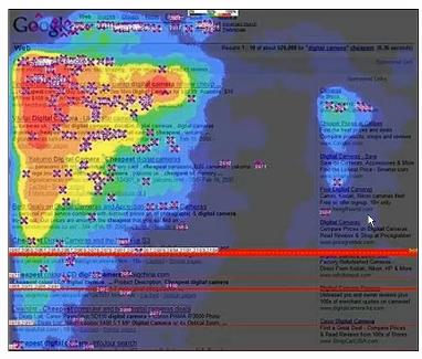 En la usabilidad web, publicidad, enlaces patrocinados, etc. A través de las fijaciones, dilatación de las pupilas, parpadeos, entre otros, se puede determinar la eficacia de un producto determinado. El seguimiento de la mirada permite analizar la interacción de los usuarios entre los clics y cuánto tiempo un usuario gasta entre clics. Además se puede utilizar para evaluar la eficiencia en las búsquedas, la marca, la publicidad en línea, etc.