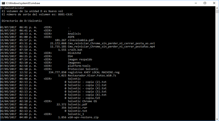Ahora veremos los comandos más útiles del símbolo del sistema.