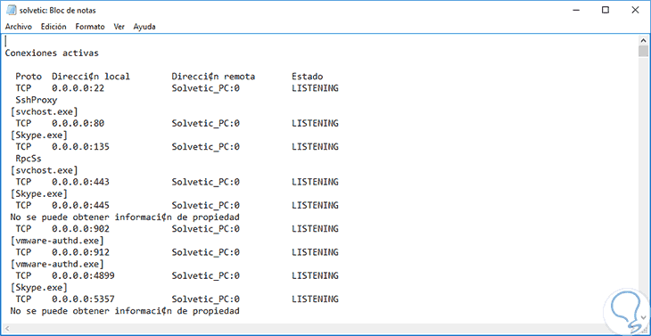 - -b: lista los programas o aplicaciones que están usando los puertos listados.
