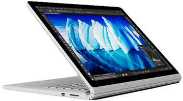 La pantalla tiene un tamaño de 13.5 pulgadas con resolución de 3.000 x 2.000 píxeles y tecnología PixelSense. En rendimiento incluye procesadores de sexta generación Intel Core i7 con 8 o 16 GB de RAM. La gráfica será una NVIDIA GeForce GTX 965M con 2GB GDDR5.
