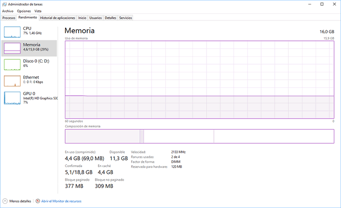 Esta memoria comprimida es una acción que lleva a cabo el programador de tareas de Windows cuando detecta que hay aplicaciones inactivas en el sistema.