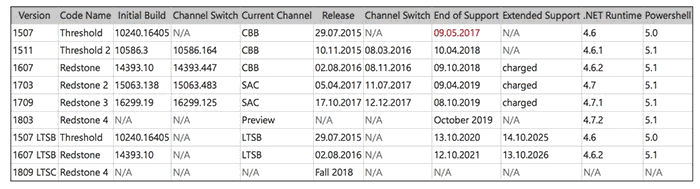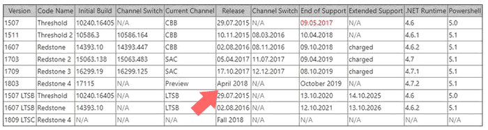 Una tabla que actualmente se encuentra corregida y que en el lugar en el que veíamos Abril, ahora únicamente podemos apreciar N/A. Aún así, todo parece indicar que Abril será el mes elegido. El final del soporte aparece en Octubre de 2019, por lo que Microsoft va a ofrecer 18 meses de soporte para esta actualización.