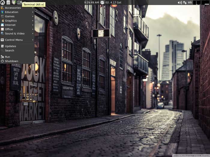 Podemos ver que LXLE es una gran opción cuando el hardware del equipo no es el mejor. El entorno de LXLE es el siguiente. Podemos usar la opción Random Wallpaper para establecer un nuevo fondo de escritorio. El acceso a las aplicaciones y funciones del sistema es muy sencillo