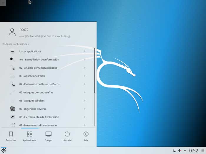 Kali Linux evoluciona de forma constante añadiendo nuevas características que se agregan a la distribución todo el tiempo y todas y cada una de ella enfocadas en la seguridad de la organización. La distribución de Kali Linux está basada en Debian y su propósito fundamental es ejecutar pruebas avanzadas de penetración y auditoría de seguridad. Para esto, Kali Linux contiene varios cientos de herramientas que están orientadas a llevar a cabo tareas de seguridad de la información en categorías como las siguientes.