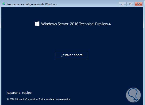 Comenzamos con el proceso de instalación de Windows Server 2016.