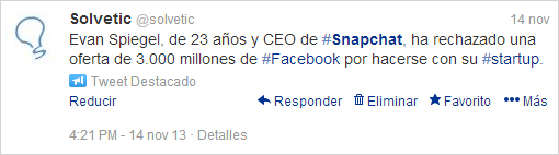 La semana pasada, os contábamos, a través de Facebooky Twitter, que el jefe de Snapchat había rechazado una oferta de 3.000 millones de dólares.