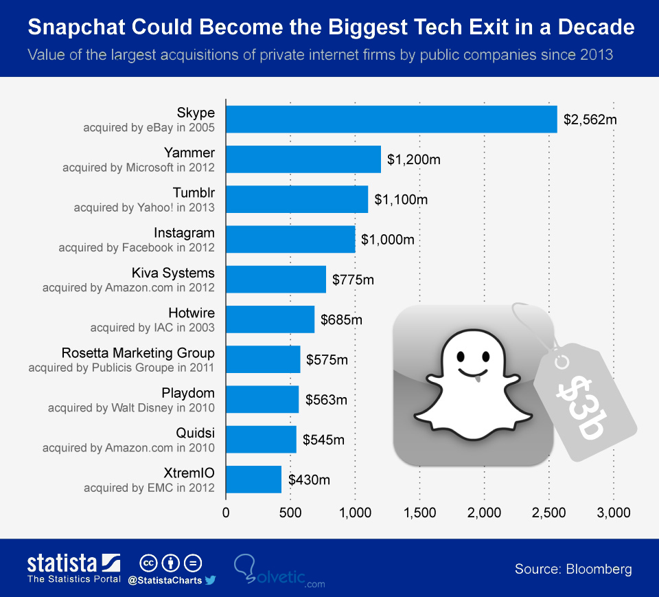 Evan Spiegel (23 años) CEO de SnapChat y cofundador junto a Bobby Murphy (25 años), decidían no venderse a Facebook. Que ha adoptado, claramente, la política de: “si no puedes con el enemigo, únete a él”, rechazaban la oferta que hubiera convertido a su StartUp en la mayor venta por encima de la compra por parte de eBay de Skype en 2005.