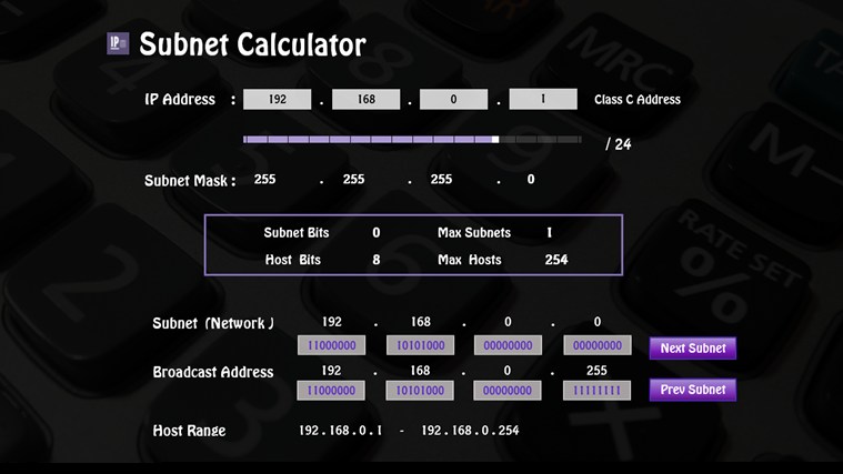 - ¿Eres arquitecto de redes? ¿Estás configurando redes, Vlan´s y quieres tener claro y de forma rápida los datos a configurar? Ip Subnet Calculator es una simple calculadora de redes, donde introducimos dirección Ip y Máscara y nos saca los elementos restantes. Así de fácil y útil.