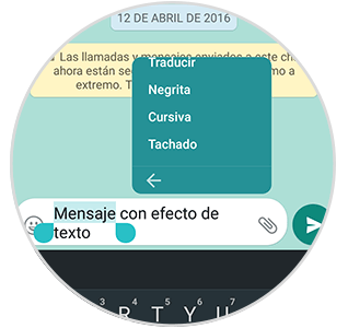 Una vez seleccionada el texto quedará marcado de este modo sin necesidad de realizar nada más. Esto podrá ser utilizado tanto en chats individuales como en chat grupales.