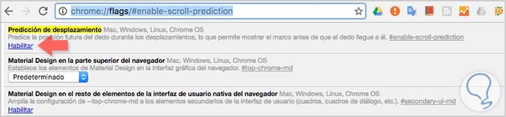 chrome://flags/#enable-scroll-predictionTenemos que seleccionar que queremos habilitar esta opción.