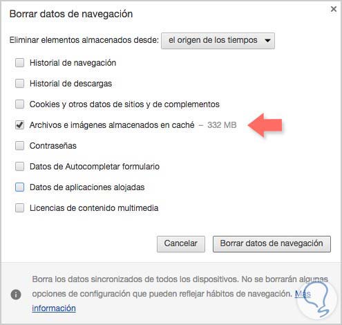 De todos modos, la memoria caché tiende a acumular gran cantidad de archivos o imágenes innecesarias lo cual puede llegar incluso a saturar la memoria RAM. Si queremos que nuestro navegador sea más rápido, podemos borrar estos archivos e imágenes almacenadas en caché. Para ello debemos acceder al historial de navegación desde la configuración de Chrome. Una vez aquí seleccionamos “Borrar datos de navegación” y dejamos seleccionado el apartado de “Archivos e imágenes almacenadas en caché”