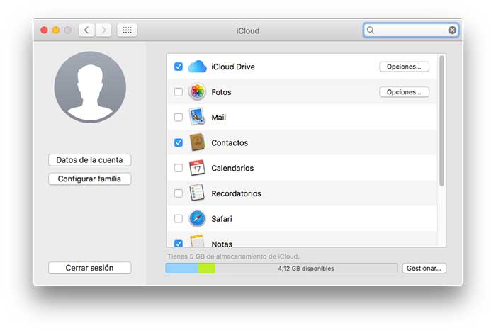 Recordemos que dentro de las opciones que podemos configurar dentro de iCloud tenemos Safari. Para acceder a configurar que elementos sincronizar entre macOS Sierra e iCloud vamos a Preferencias del sistema. Allí pulsamos en la ficha iCloud y se desplegará la siguiente ventana donde seleccionaremos las casillas con los elementos que se han de sincronizar, si no deseamos que Safari sea sincronizado basta con desactivar la respectiva casilla: