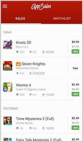 Otra de las alternativas para encontrar aplicaciones de pago de manera gratuita, es AppSales. Esta aplicación la podemos encontrar disponible en el Play Store y gracias a ella vamos a poder recibir notificaciones en relación a nuevas ofertas en las aplicaciones o su disponibilidad de manera gratuita.
