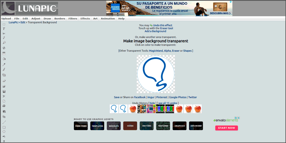 Esta página es una de las opciones más completas que hay online ya que integra a la vez diversas opciones de edición sin necesidad de instalar nada. Además de la interesante opción de fondo transparente cuenta con una gran variedad. Sorprende que una página online gratuita tengas tantas opciones múltiples.