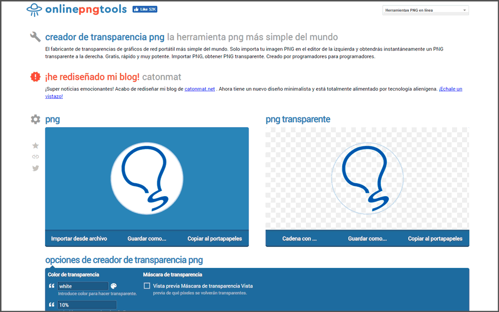 Online png tools es otra página gratuita que permite editar imágenes fácilmente entre los que destaca el fondo transparente. Gracias a esta opción tan solo tendremos que subir nuestra imagen y veremos cómo se crea la vista previa de nuestro archivo PNG transparente. Podremos ajustar parámetros dentro del creador de transparencia como el color para hacer transparente o la tolerancia de coincidencia. A medida que vayas variando los ajuates, la vista previa cambiará.