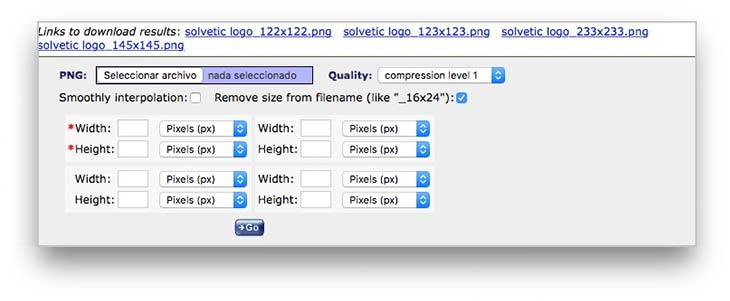 Tenemos que subir la imagen que seleccionemos y agregar la altura y anchura que queremos que tenga nuestra imagen. Tenemos la posibilidad de realizar diferentes tamaños de una sola vez.