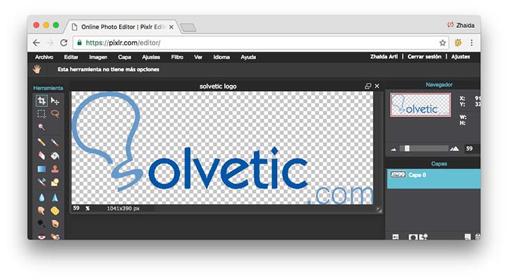 De este modo podremos mantener la transparencia en nuestra imagen y poder ajustar en ella aquellos retoques que consideremos necesarios desde dentro de la web.