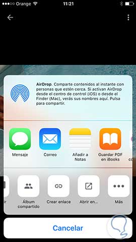 Si queremos poder compartir nuestras fotos con otras personas a través de algun mail, WhatsApp, compartir un álbum o crear un enlace, lo podemos hacer de manera muy sencilla. Tenemos que seleccionar aquello que queremos compartir, y en la parte inferior vamos a observar el botón de compartir. Si lo seleccionamos, vamos a poder observar todas aquellas opciones que tenemos disponibles para ello.