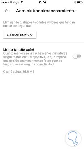 Si seleccionamos “Administrar almacenamiento” ahí vamos a poder ver una sección en la que nos indica que se eliminará de nuestro dispositivo fotos y videos que tengan copias de seguridad.