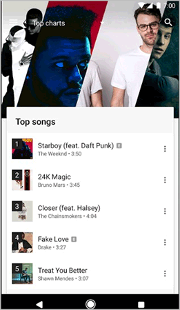 Por último, no podemos dejar fuera el reproductor oficial de Google como es Google Play Music. Este reproductor nos permite usar una interfaz ligera, fácil e intuitiva, con posibilidad de subir tu música en la nube, ahorrando espacio en tu dispositivo. También tenemos la posibilidad de sincronizar con iTunes, por lo que lograremos tener un sistema completo de audio en nuestro móvil.