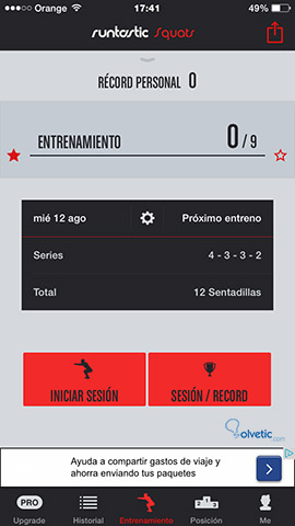 La propia App tiene un sistema de reconocimiento de sentadillas, las cuales son contadas automáticamente utilizando un acelerómetro.