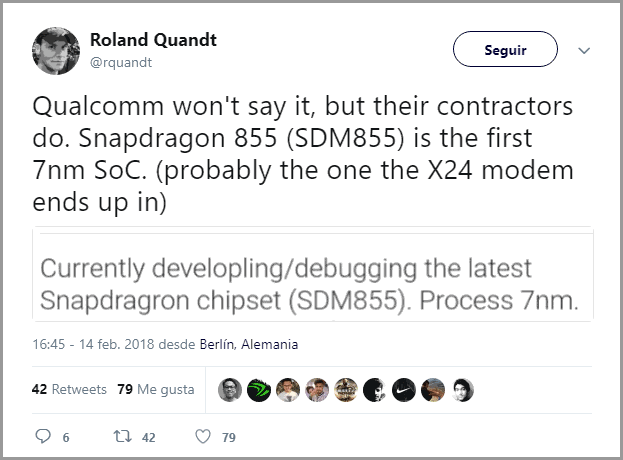 Ahora, y aunque todavía no hemos podido comprobar de primera mano como se desenvuelve el procesador Snapdragon 845 ya empezamos a asistir a las primeras pistas de lo que será Snapdragon 855. Según las filtraciones de Roland Quant de Win Future en un tweet parece que estamos hablando del primer procesador fabricado con una tecnología de 7 nanómetros. ¿Quieres saber más?