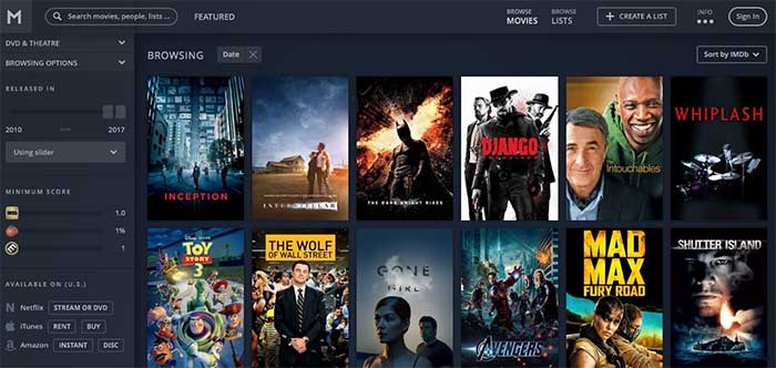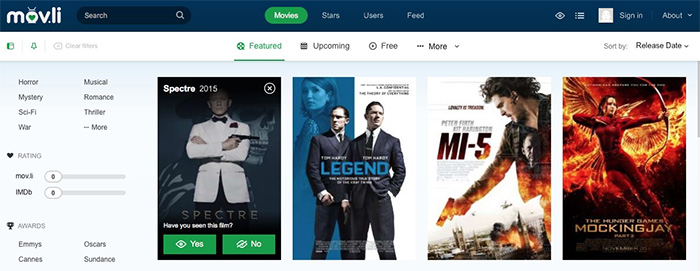 En esta web vamos a poder encontrar diferentes sugerencias de películas de una manera bastante sencilla y con funcionalidades básicas. Si entramos en la páginas, vamos a ver que dispone de una barra lateral en la que podemos aplicar diferentes filtros en función de los países, la fecha en que se estrenó la película y el género.