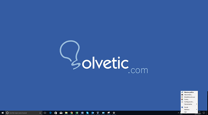 Toda la aplicación se administrará desde el icono en la barra de tareas donde daremos clic derecho para ver las diversas opciones: