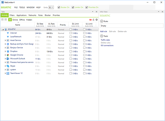 - Con NetLimiter tendremos la capacidad e asignar prioridades a aplicaciones más vitales