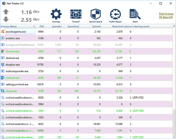 Es una herramienta gratuita que nos ofrece la posibilidad de analizar y ver en tiempo real el uso de red de cada aplicación y servicio en el sistema operativo. Con NetWorx contamos con varias herramientas para la gestión del tráfico de red y comportamiento de los programas sobre la misma.