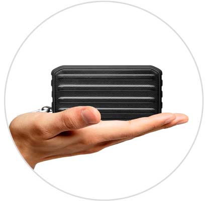 Este altavoz es realmente portable y se convertirá en tu amigo inseparable sea cual sea tu actividad. Pese a su reducido tamaño posee un diseño fuerte y robusto que gracias a los materiales de TPU lo convierte en resistente al agua o a desgaste al aire libre. Su protección IPX6 le permite reproducir y ser inmune a salpicaduras e incluso la arena. Su peso es de 277 gramos.