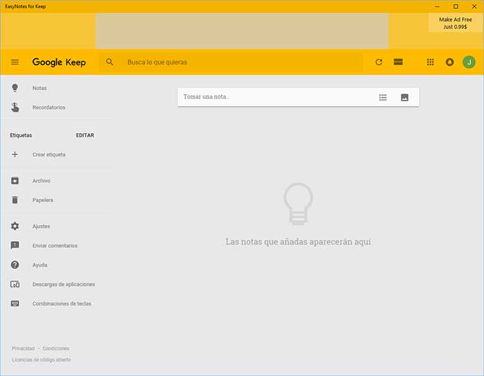 Esta aplicación está diseñada para cargar automáticamente el servicio web de Google Keep y gracias a esto podemos hacer uso del servicio Google Keep en una aplicación independiente razón por la cual no será necesario tener su navegador web constantemente abierto.