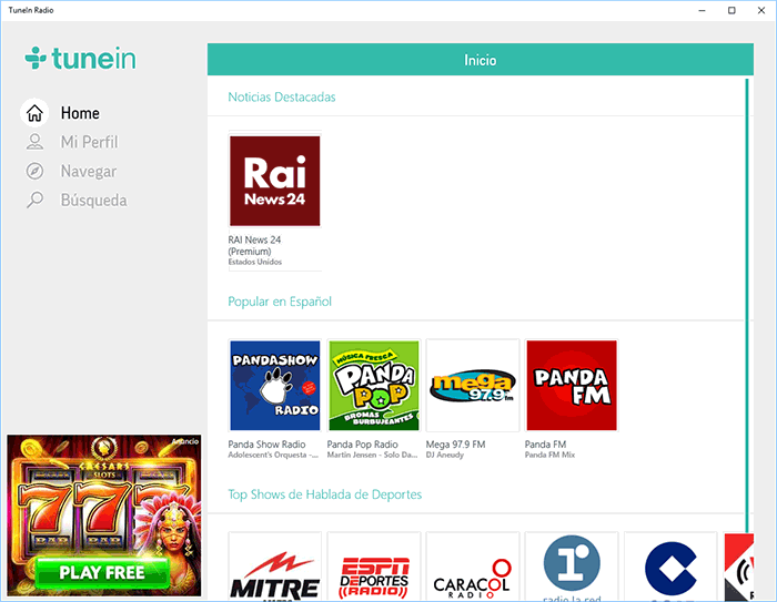 Gracias a esta aplicación podremos escuchar una de las colecciones de estaciones de radio más grande del mundo en Windows 10 de forma gratuita. Con TuneIn tendremos a nuestro alcance todo lo mejor de los deportes, noticias y radio hablada, además de los mejores podcasts, podremos escuchar más de 100,000 verdaderas estaciones de radio, transmitiendo desde todo el mundo.