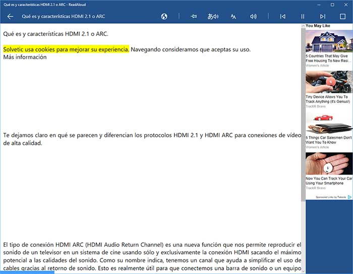 Una de las mejores aplicaciones para la conversión de texto a voz la cual puede leer en voz alta diversos elementos como páginas web, noticias, documentos, libros electrónicos o sus propios contenidos de forma útil. ReadAloud es fundamental para personas con discapacidad visual, para estudiantes con sus tareas de lectura o para nosotros mismos si deseamos escuchar el texto de un determinado archivo.