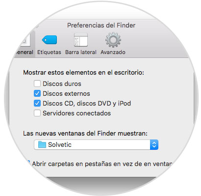Para esto vamos al menú Finder y seleccionamos la opción Preferencias.
