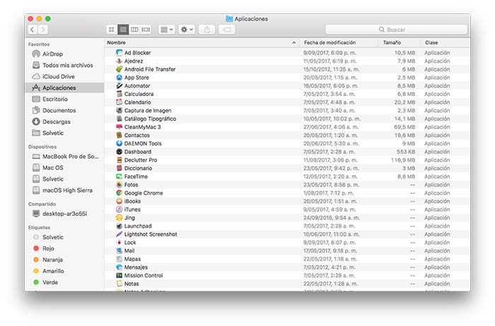 Cuando accedemos al Finder podemos ver que en la barra lateral encontramos acceso directo a las unidades, carpetas y favoritos de macOS High Sierra.