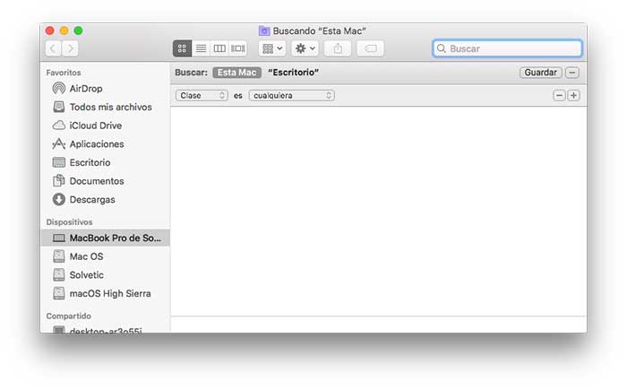 Con la combinación de teclas [color=rgb(51,51,51)]⌘[/color] + F podremos abrir la ventana de búsqueda del Finder y allí ubicar los elementos necesarios: