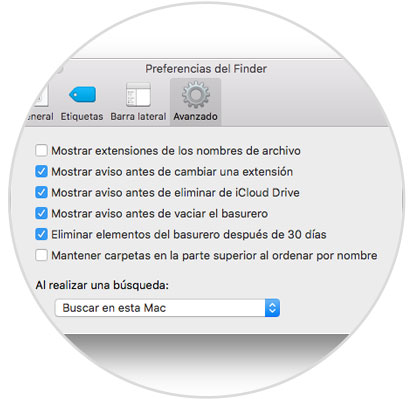 Para comprobarlas vamos de nuevo a la ruta Finder / Preferencias y en la pestaña Avanzado veremos las siguientes dos nuevas opciones: