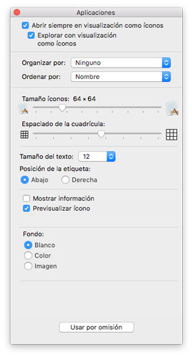 El Finder nos ofrece diversas opciones de visualización de los elementos en la carpeta seleccionada con el fin de tener una mejor perspectiva del contenido.