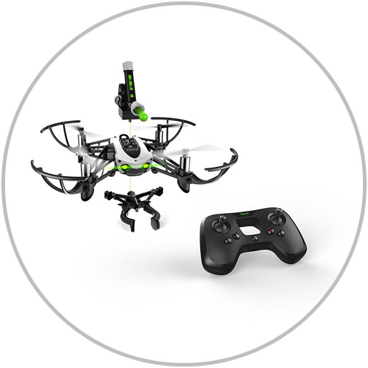 Otro de los minidrones desarrollado por Parrot es Mambo el cual cabe en la palma de nuestra mano, pero nos ofrece experiencias de vuelo y captura de imágenes o videos realmente únicas. Parrot Mambo FPV puede ser volado en inmersión completa gracias s sus nuevos accesorios, para ello podemos conectar la cámara FPV al minidron usando la tecnología Smart Block para grabar y transmitir contenido en HD.